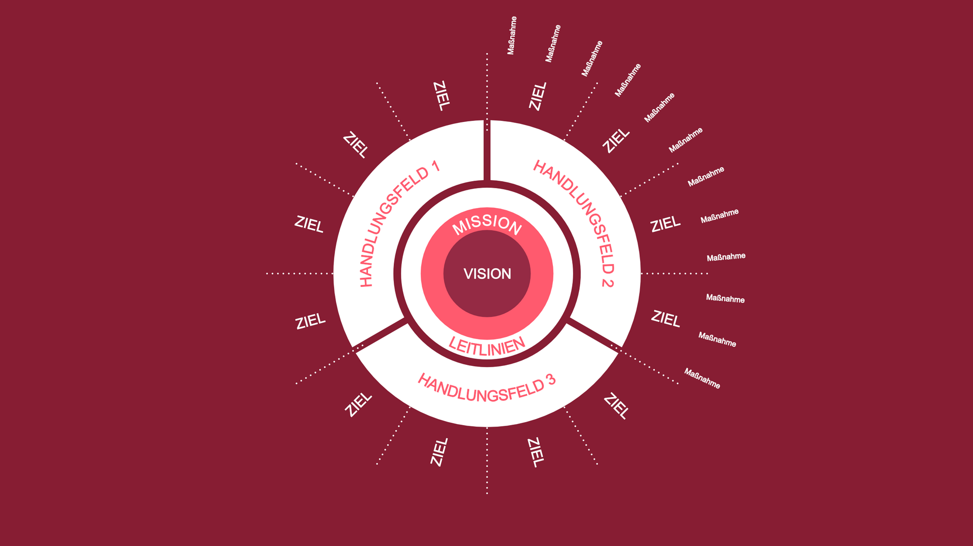 Dies bildet zusammen mit klaren Strukturen für Steuerung und Umsetzung den Rahmen für klare Ziele in drei Handlungsfeldern.